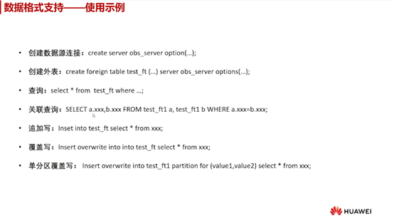 创建一个数据源连接,指定OBS服务器的相关参数。创建一个外部表,将OBS中的数据映射到该表中。像操作普通的数据库表一样来查询和分析这些数据了。