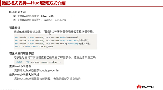 对于Hudi增量查询功能,我们可以通过设置增量查询参数来实现。这些参数包括消费模式、起始时间戳和结束时间戳等。设置好参数后,通过查询DWS外表来获取增量数据。