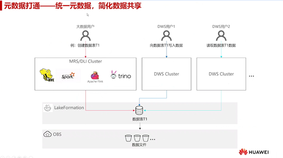以一个具体场景为例,假设DWS用户1创建了一个数据表T1,并向其中写入了数据。DWS用户2希望获取数据表T1的数据。在传统的湖仓两层架构中,用户2可能需要经过一系列的复杂操作才能获取到数据。但在湖仓一体的架构中,由于存在统一的元数据层,用户2只需要通过简单的查询操作即可获取到所需的数据。