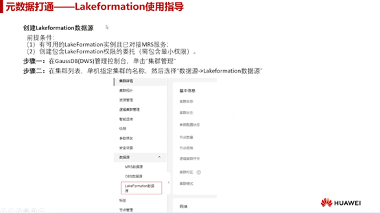 满足一些前提条件才能使用Lakeformation。这些条件包括:有一个可用的Lakeformation实例,并且已经与MRS服务进行了对接;创建一个包含Lakeformation权限的委托,这个委托需要包含最小权限,保安全地访问数据。