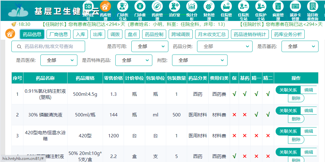 云HIS药物管理系统