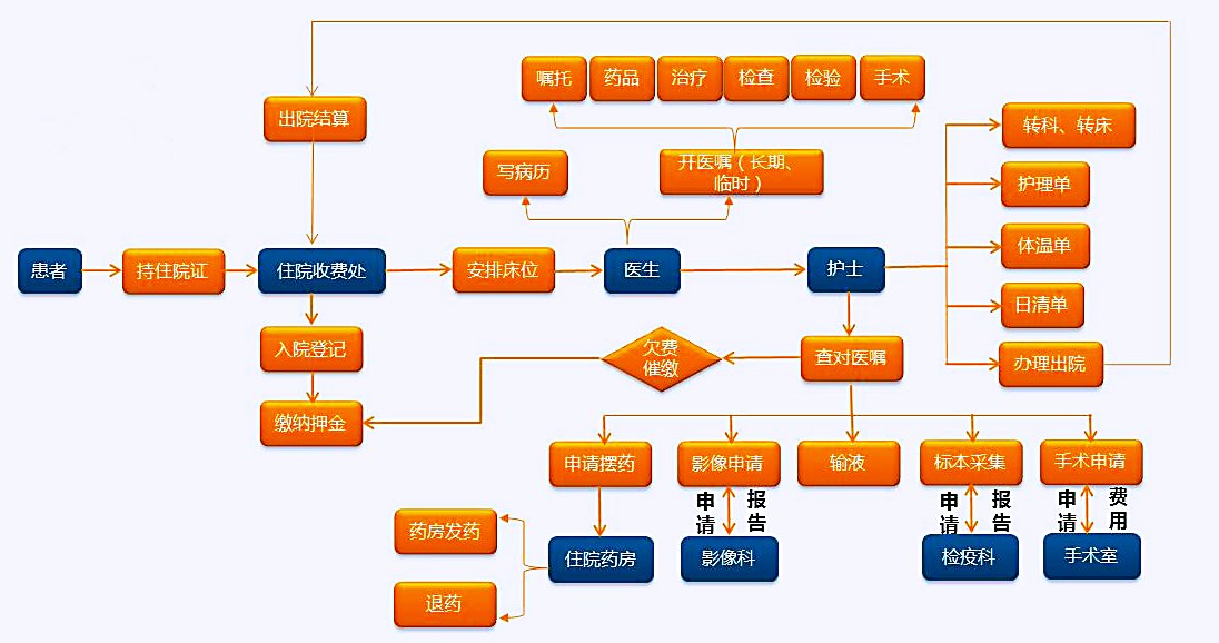 住院登记:住院患者信息登记,自费登记或医保登记