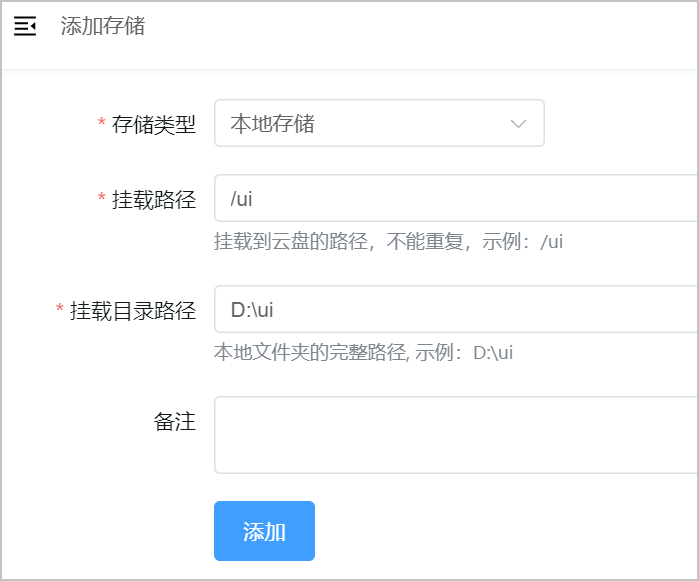 以添加资源盘为例, 添加新目录