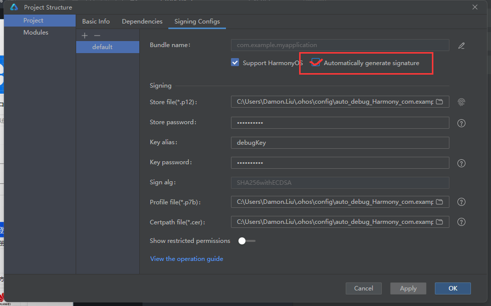 我们需要为项目设置签名,才可以和开发板进行联调。