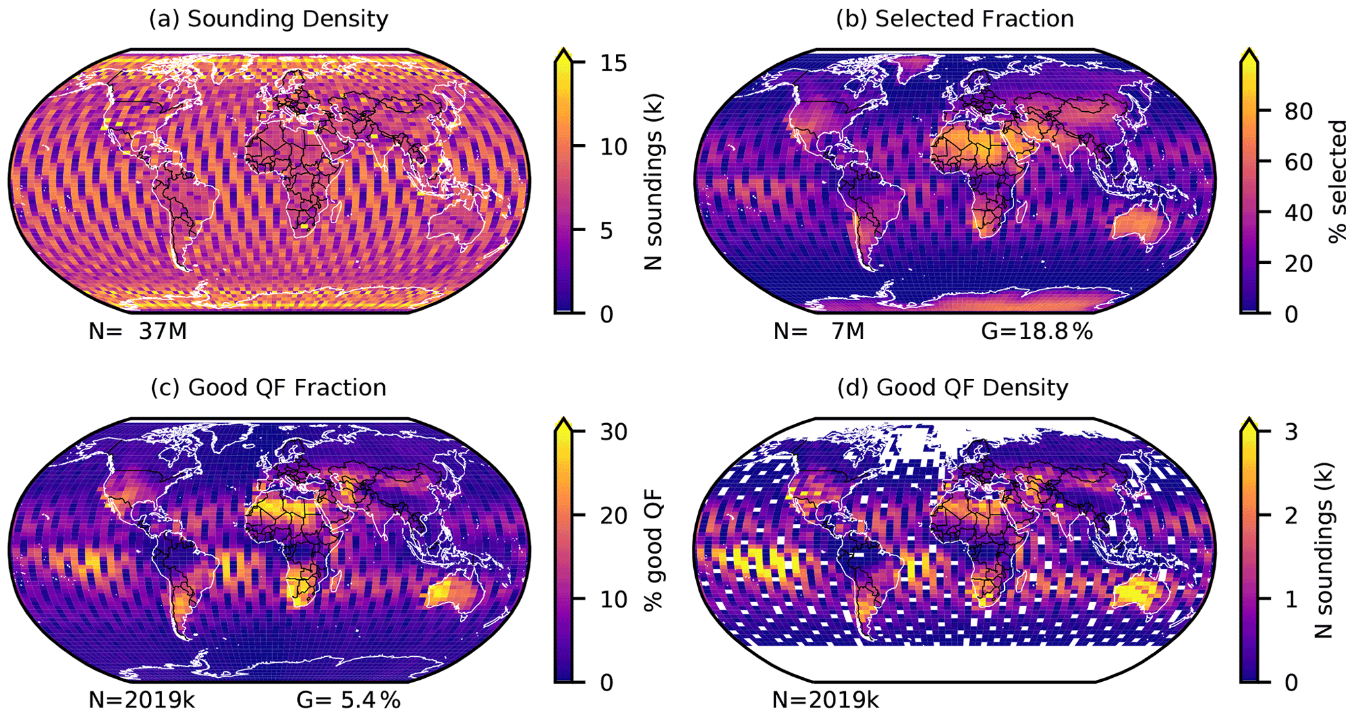 美国宇航局戈达德地球科学数据和信息服务中心(GES-DISC)提供了 ACOS GOSAT v9 XCO2 数据的每轨道完整格式(https://doi.org/10.5067/OSGTIL9OV0PN,OCO-2 科学小组等,2019b)和每日精简格式(https://doi.org/10.5067/VWSABTO7ZII4,OCO-2 科学小组等,2019a)。此外,还生成了一套新的月度超级精简文件,其中仅包含每次卫星观测的最基本变量,为入门级用户提供了一个轻量级卫星产品,供其进行初步探索(CaltechDATA,https://doi.org/10.22002/D1.2178,Eldering,2021)。v9 ACOS 数据用户指南》(DUG)介绍了 GOSAT 数据的最佳使用方法(O'Dell 等人,2020 年)。GOSAT v9 数据集对于研究跨越整整十年或更长时间的碳循环现象应该特别有用,并可作为 2014 年 9 月开始的较短的 OCO-2 v10 数据集的有益补充。