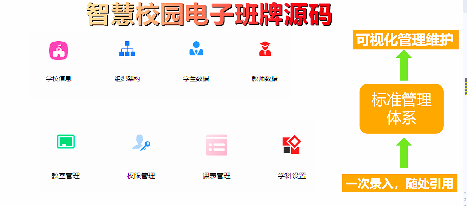 6、教室管理:支持管理员针对教室和班级进行绑定管理,通过教室id绑定班级,教室绑定班牌设备