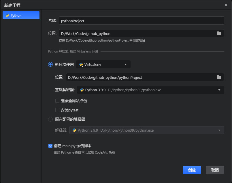 CodeArts IDE 提供了一个 Python 项目向导,帮助您更轻松地创建新项目并配置环境。