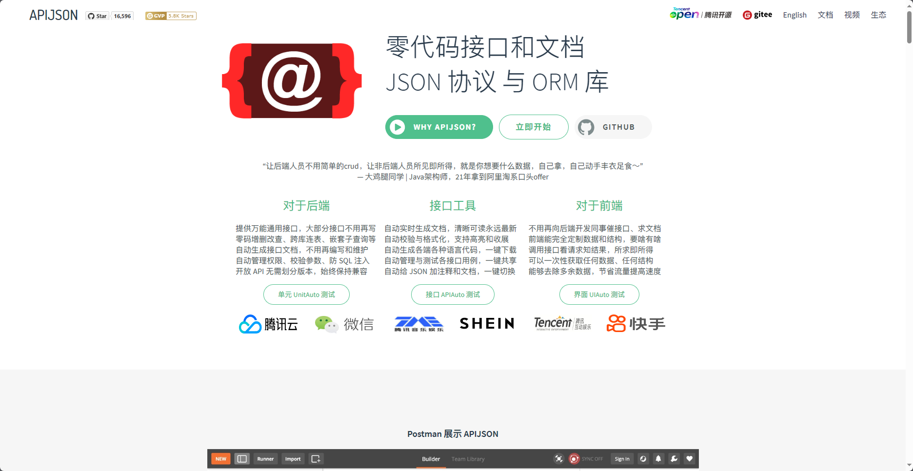 腾讯开源你的零代码接口和文档,JSON 协议 与 ORM 库