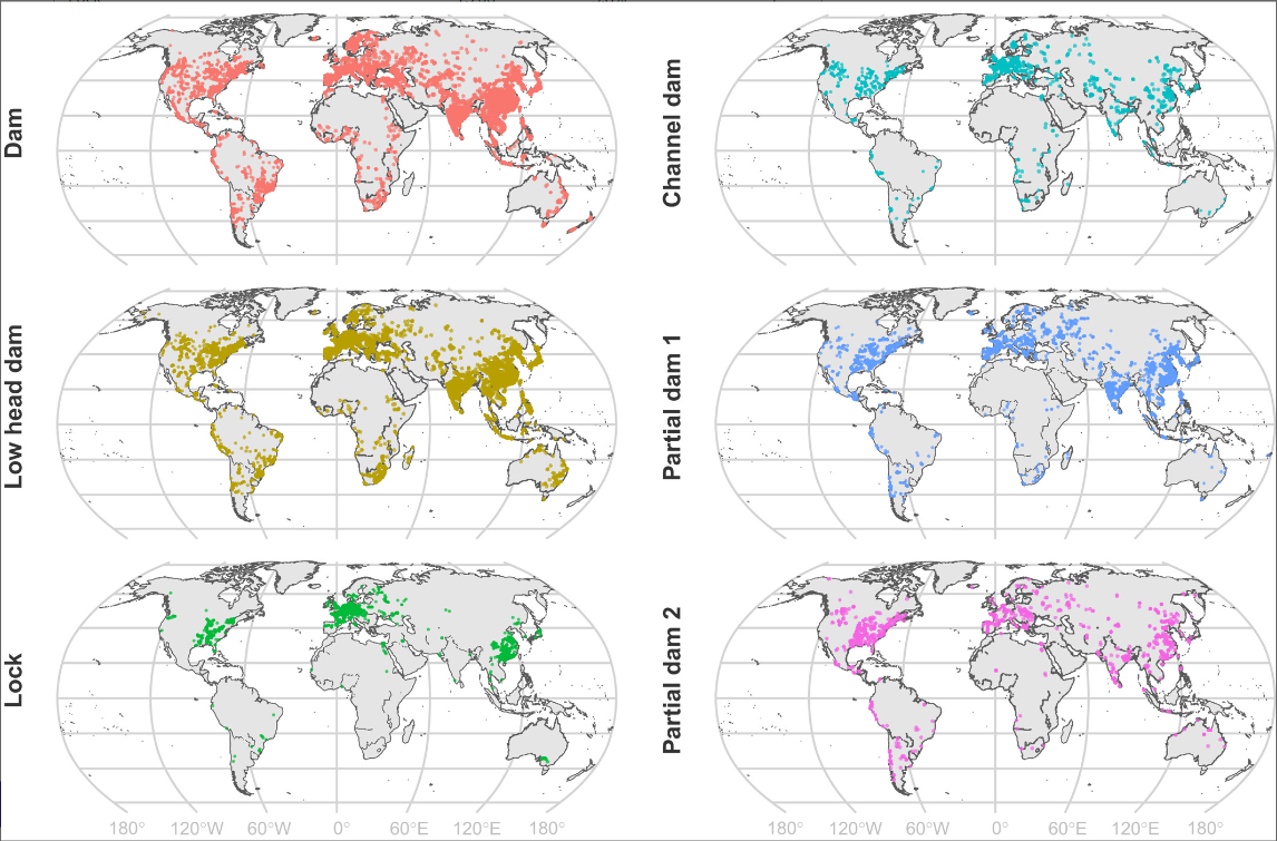 - 全球河流障碍数据库识别了许多被其他全球水坝数据库遗漏的河内结构