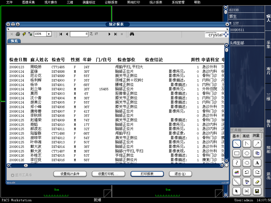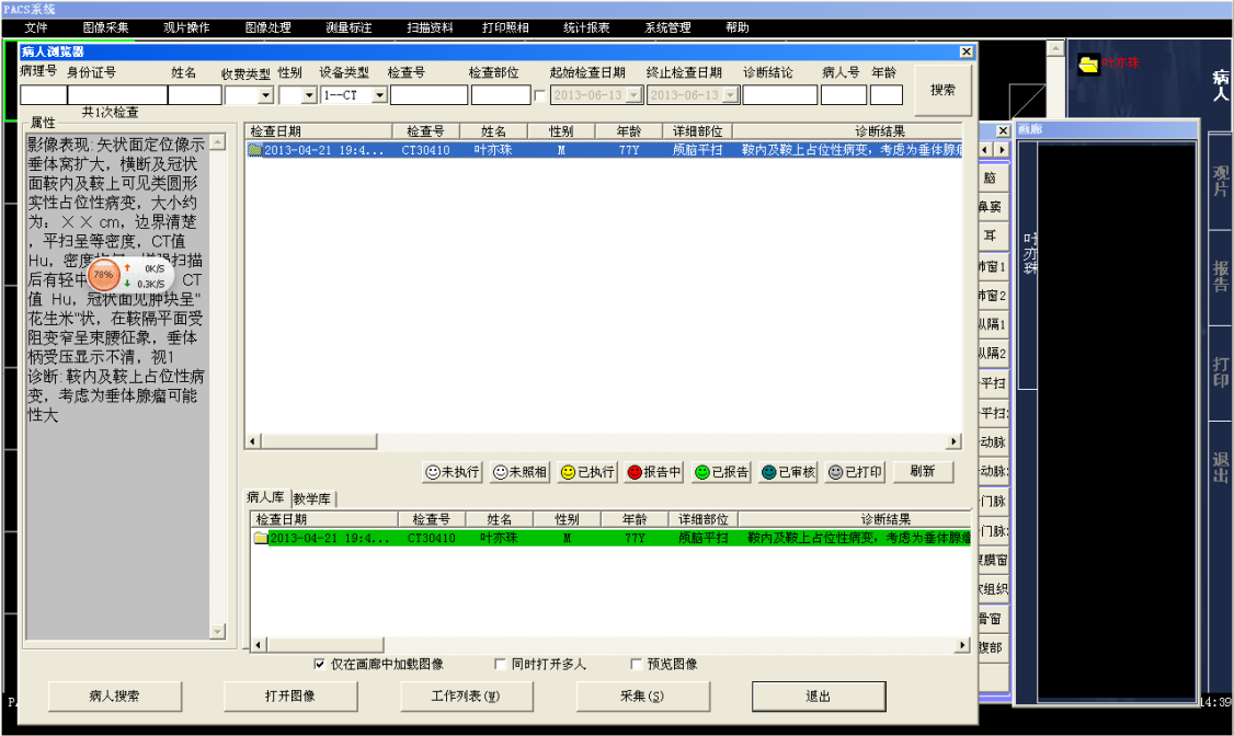 PACS系统可实现检查预约、病人信息登记、计算机阅片、电子报告书写、胶片打印、数据备份等一系列满足影像科室日常工作的功能。