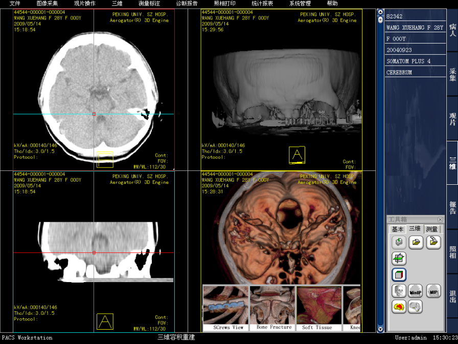 三甲医院医学影像PACS系统源码,集成三维影像后处理功能,包括三维多平面重建、三维容积重建、三维表面重建、三维虚拟内窥镜、最大/小密度投影、心脏动脉钙化分析等功能。系统功能强大,代码完整。