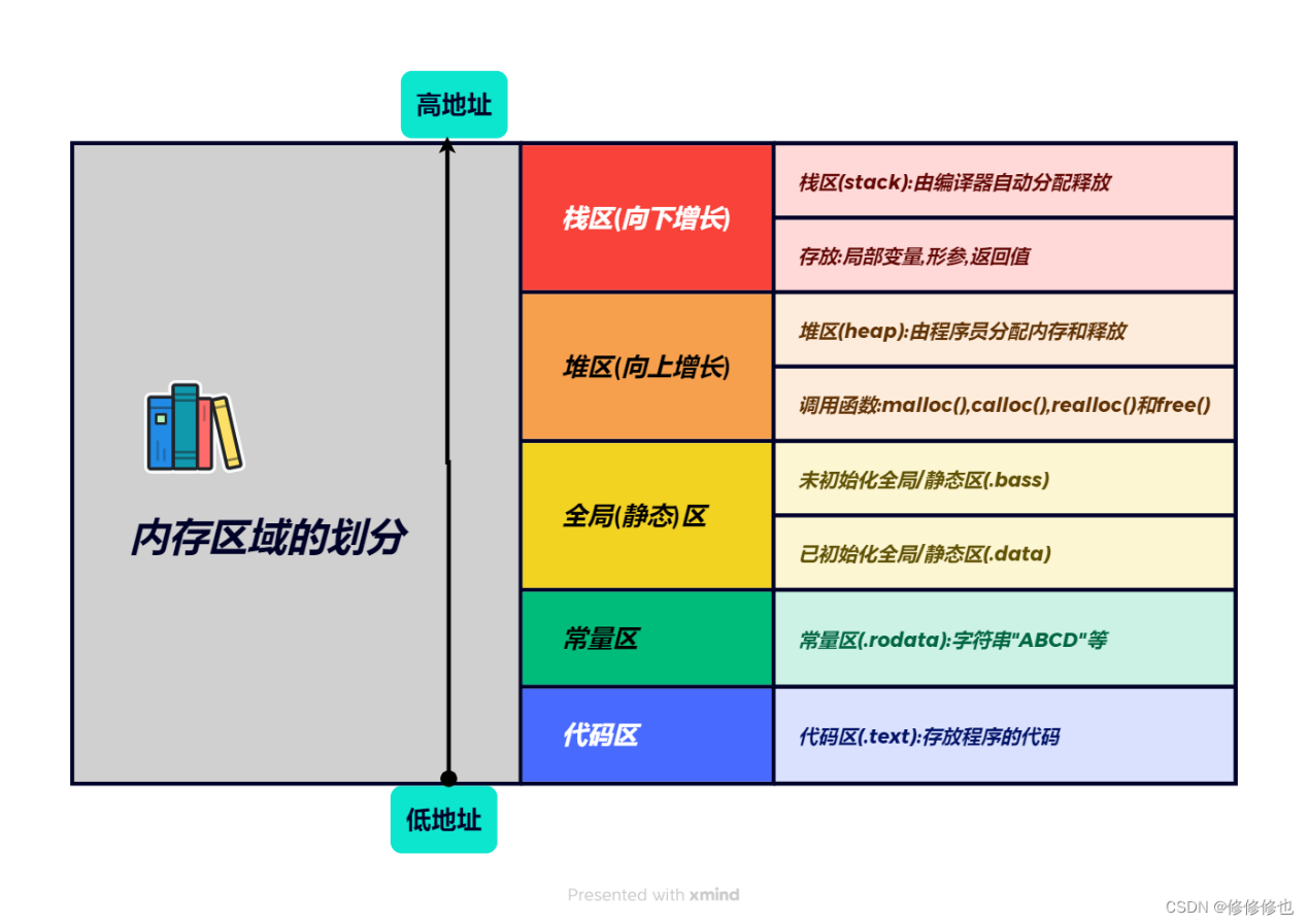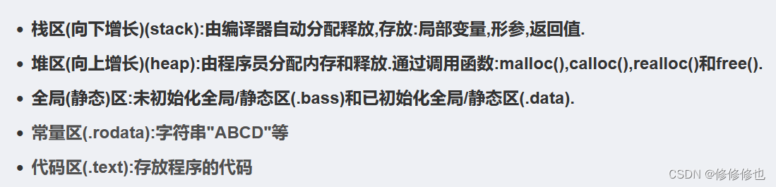 1. 栈又叫堆栈--非静态局部变量/函数参数/返回值等等,栈是向下增长的。