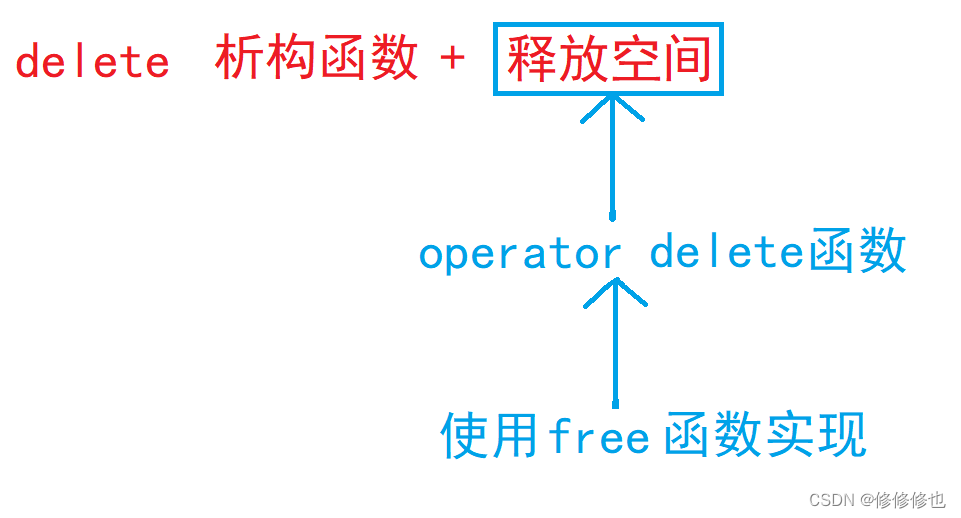 同理,delete和free以及operator delete的关系与之相同,如下图: