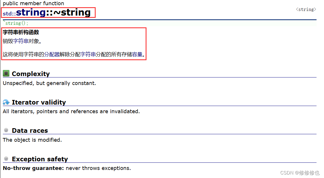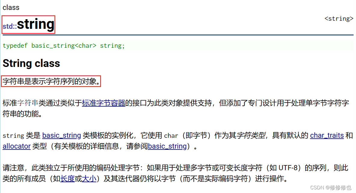 我们先来看一下https://legacy.cplusplus.com/ 网站对string类的文档介绍:string类文档