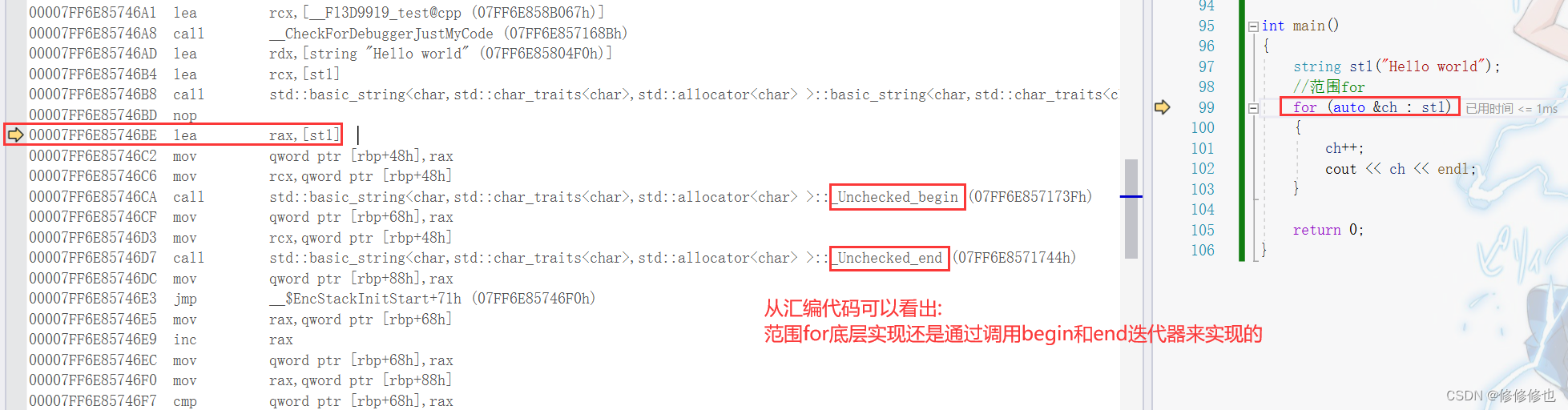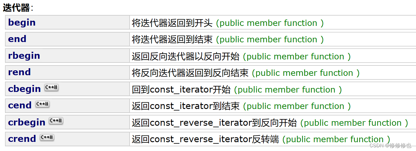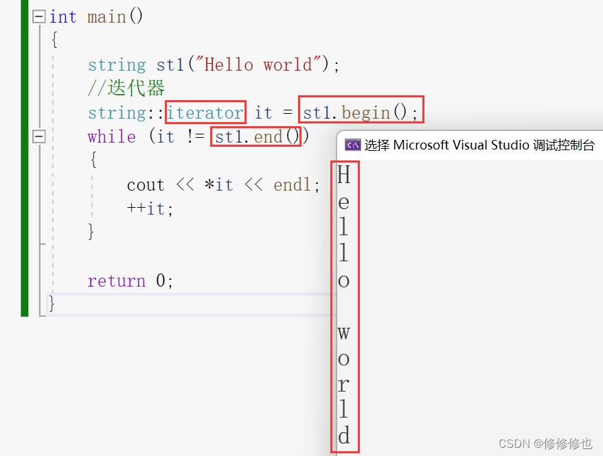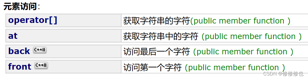 接下来我们演示学习几种常见的string类对象的迭代遍历及元素访问函数: