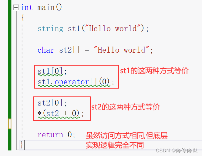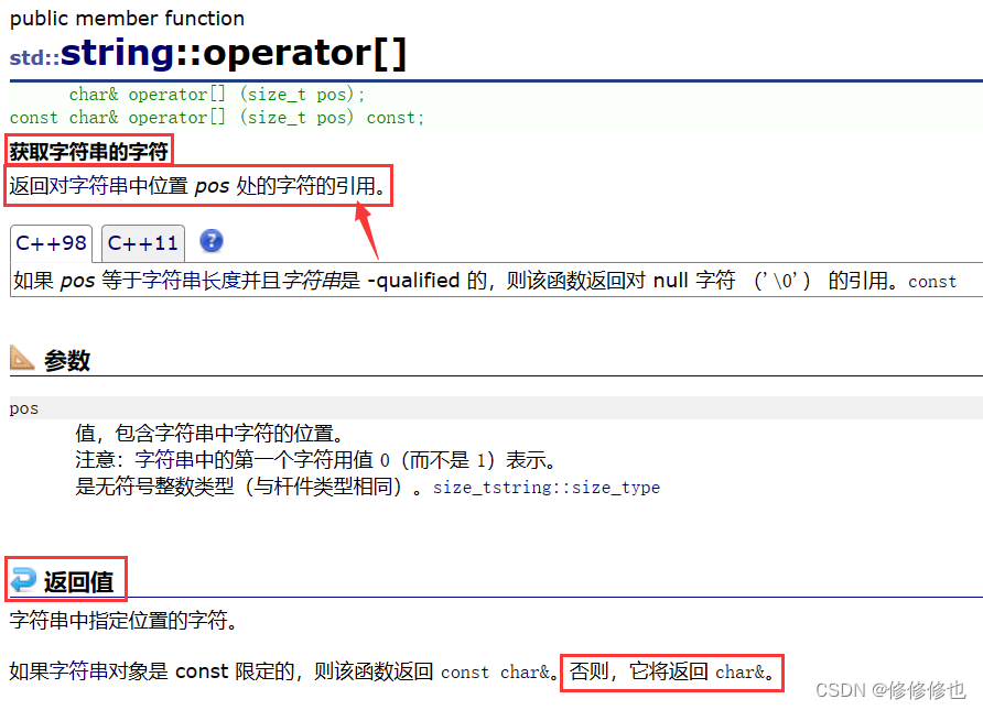 operator[]重载访问string类对象和内置类型访问数组成员的区别: