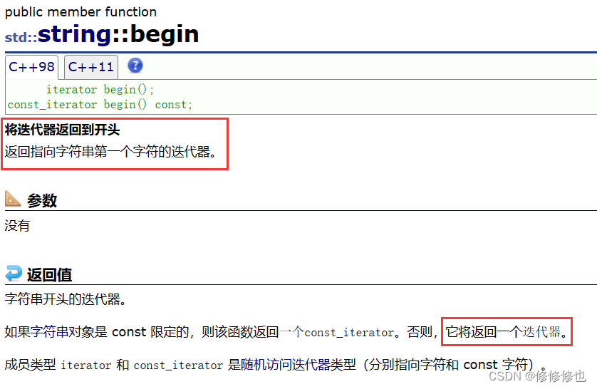 begin获取一个字符的迭代器+end获取最后一个字符下一个位置的迭代器 |