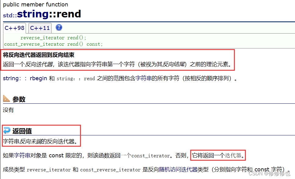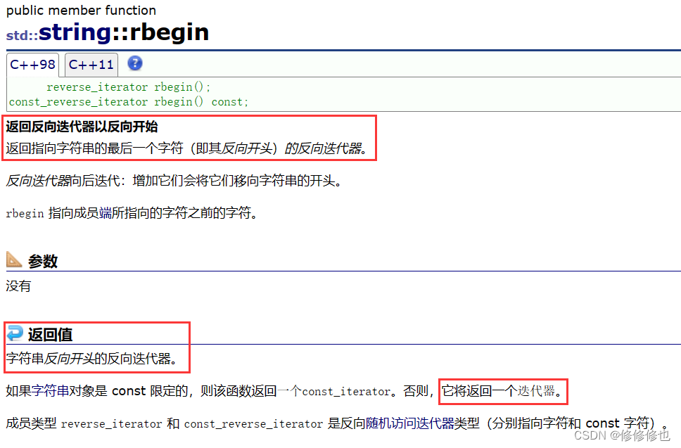 使用rbegin+rend迭代器反向遍历访问string类对象: