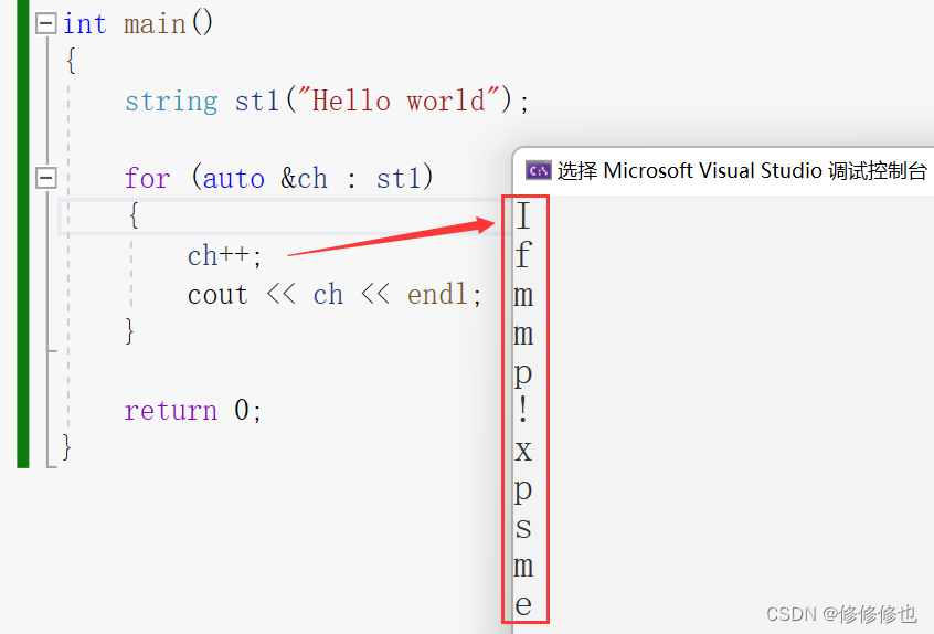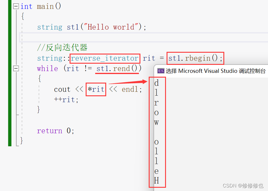 rbegin+rend反向迭代器修改string类对象效果如下: