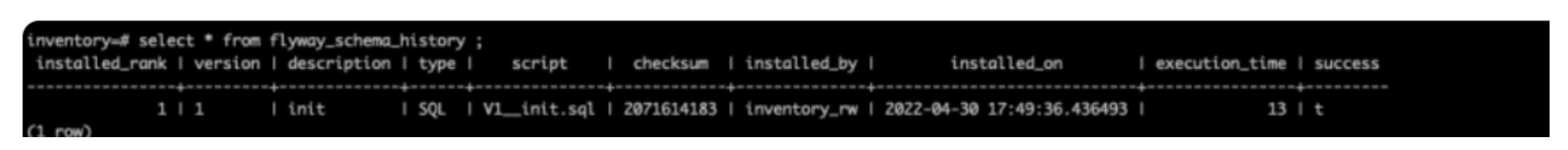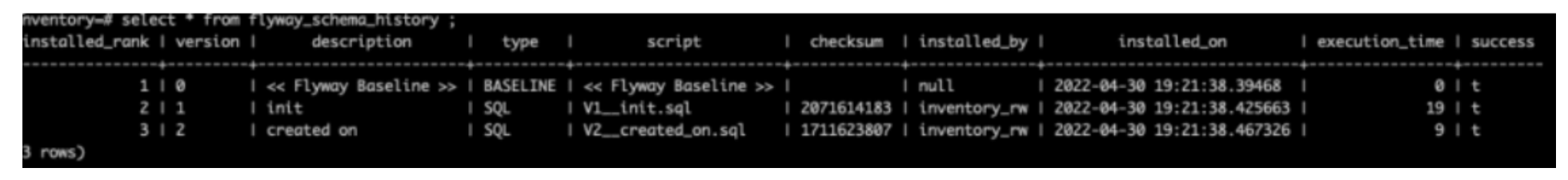 它在名为 flyway_schema_history 的表中跟踪迁移历史记录