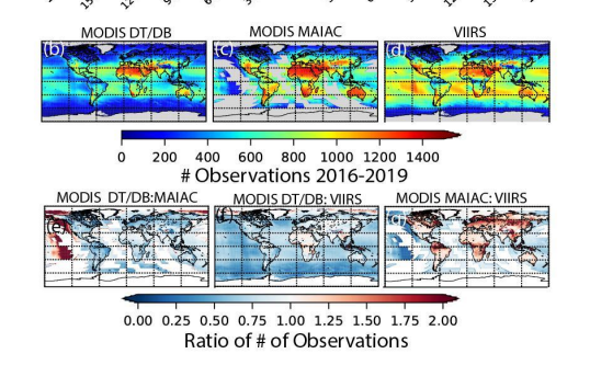 美国国家航空航天局(NASA)的可见红外成像辐射计套件(VIIRS)标准三级(L3)每月深蓝气溶胶产品来自苏米国家极轨伙伴关系(SNPP)仪器,提供全球陆地和海洋上空气溶胶光学厚度(AOT)的卫星衍生测量值及其网格集合特性。深蓝算法借鉴了以前从陆地和海洋上的海洋观测宽视场传感器(SeaWiFS)和陆地上的中分辨率成像分光仪(MODIS)测量中检索气溶胶光学厚度的应用。