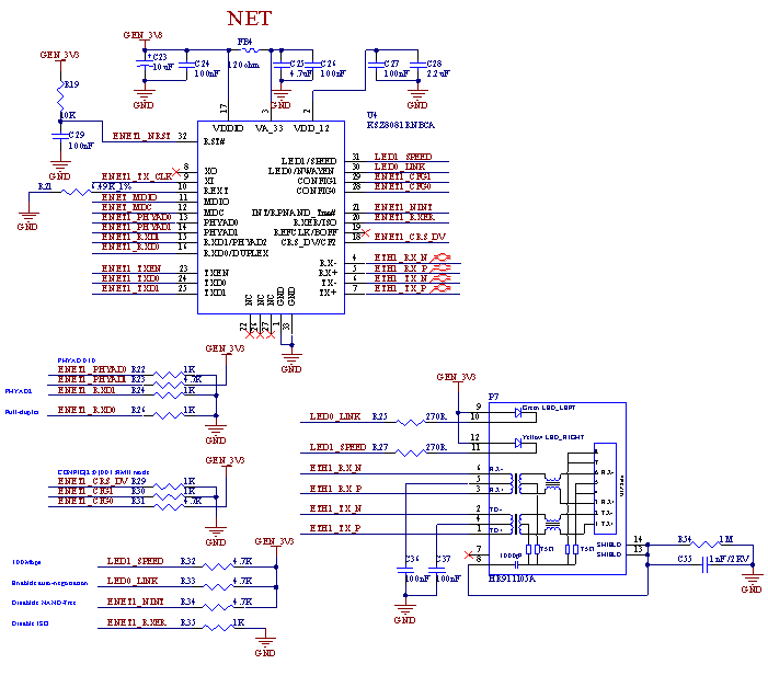 (3)MDIO以及RMII接口的引脚要注意电平匹配,核心板为3.3V电平。