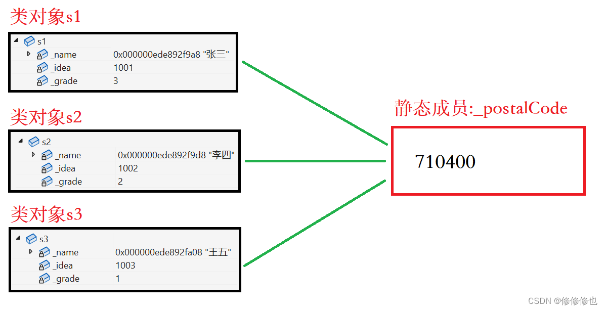 编辑也就是说,无论开辟了多少类对象,静态成员变量都只有一个,并且不属于任何类对象本身,只有成员变量才属于类对象。静态成员变量和类对象和其成员变量关系如下图: