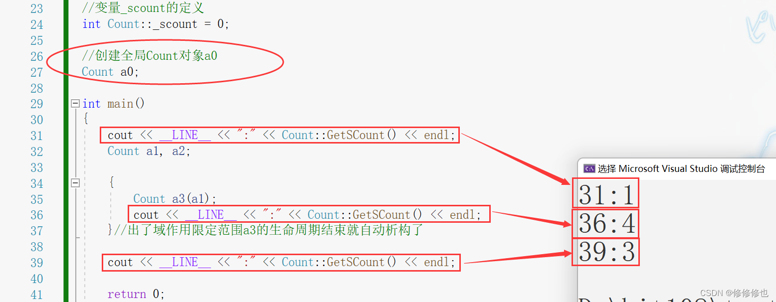 cout << __LINE__ << ":" << Count::GetSCount() << endl;