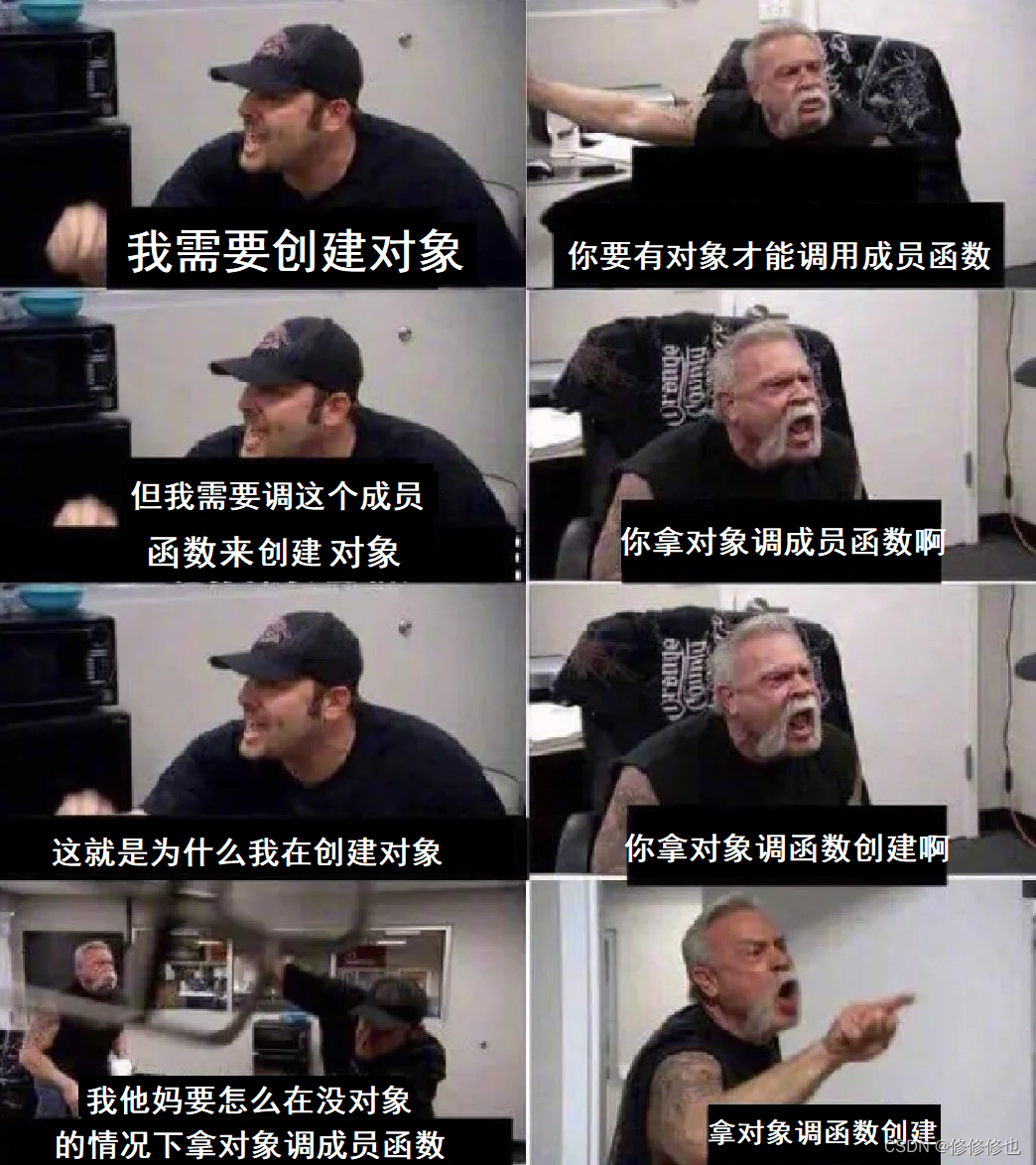3.使用static修饰成员函数是因为要解决无类对象就无法调用类成员函数的问题,如:
