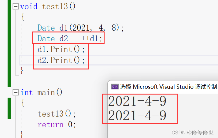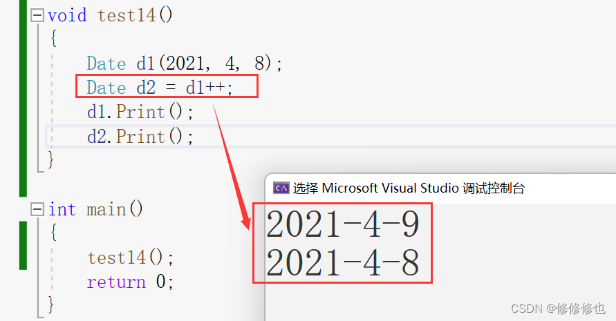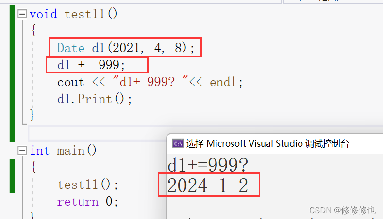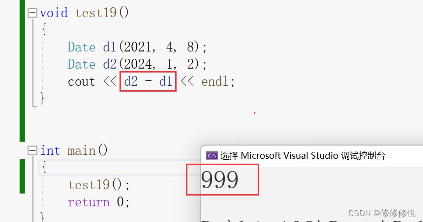 //因为成为成员函数后Date对象默认占用第一个参数,就成为了左操作数