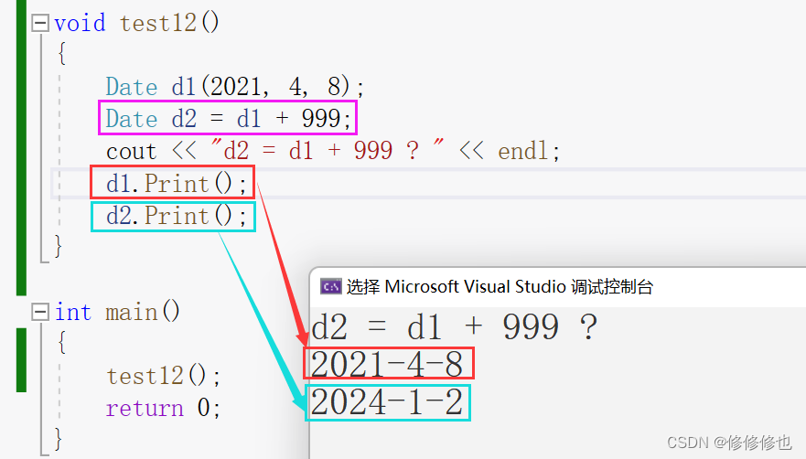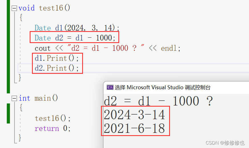 //如果要符合我们的调用习惯呢,那只能改库了,把库里的cout重载一下,让它也能支持Date类的打印
