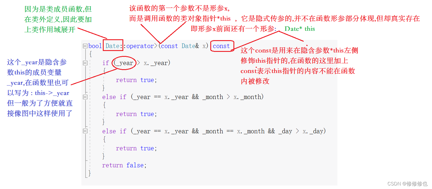 因为是第一次构造类成员函数,所以借这个函数详解一下其中一些区别于C语言的特性: