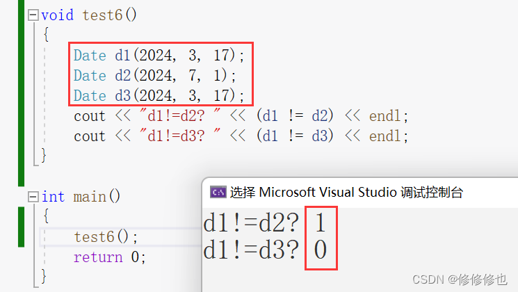 cout << "d1!=d3? " << (d1 != d3) << endl;