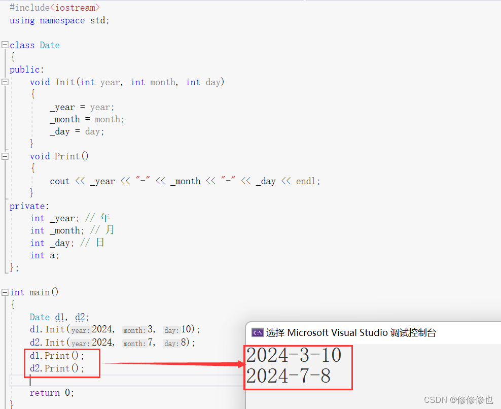 Date类中有 Init 与 Print 两个成员函数,函数体中没有关于不同对象的区分,那当d1调用 Init 函数时,该函数是如何知道应该设置d1对象,而不是设置d2对象呢?