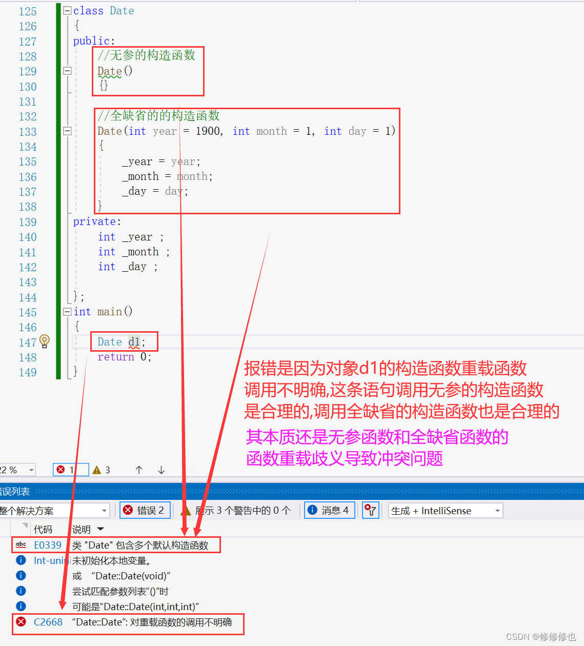 4.构造函数可以重载。(tips:还不了解函数重载的朋友可以先移步:【C++】函数重载 )