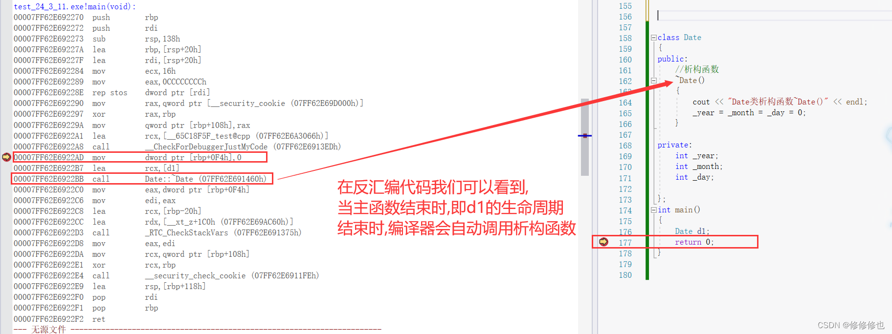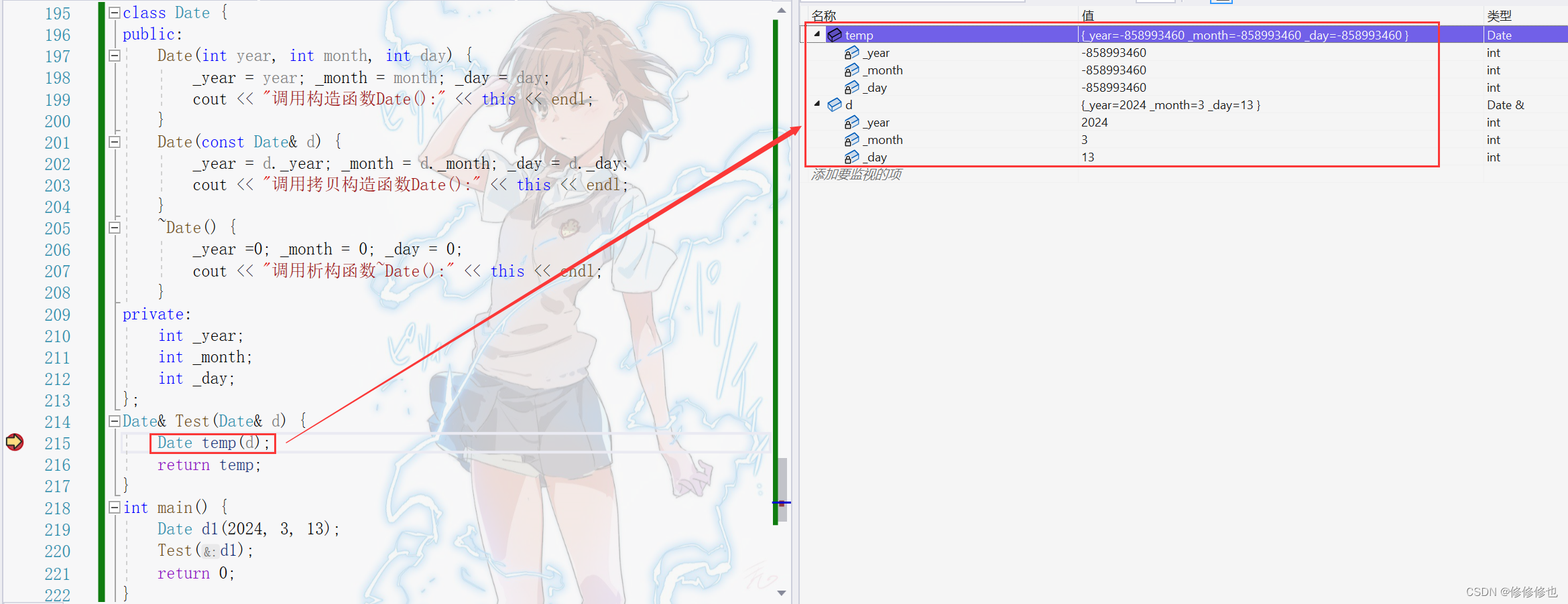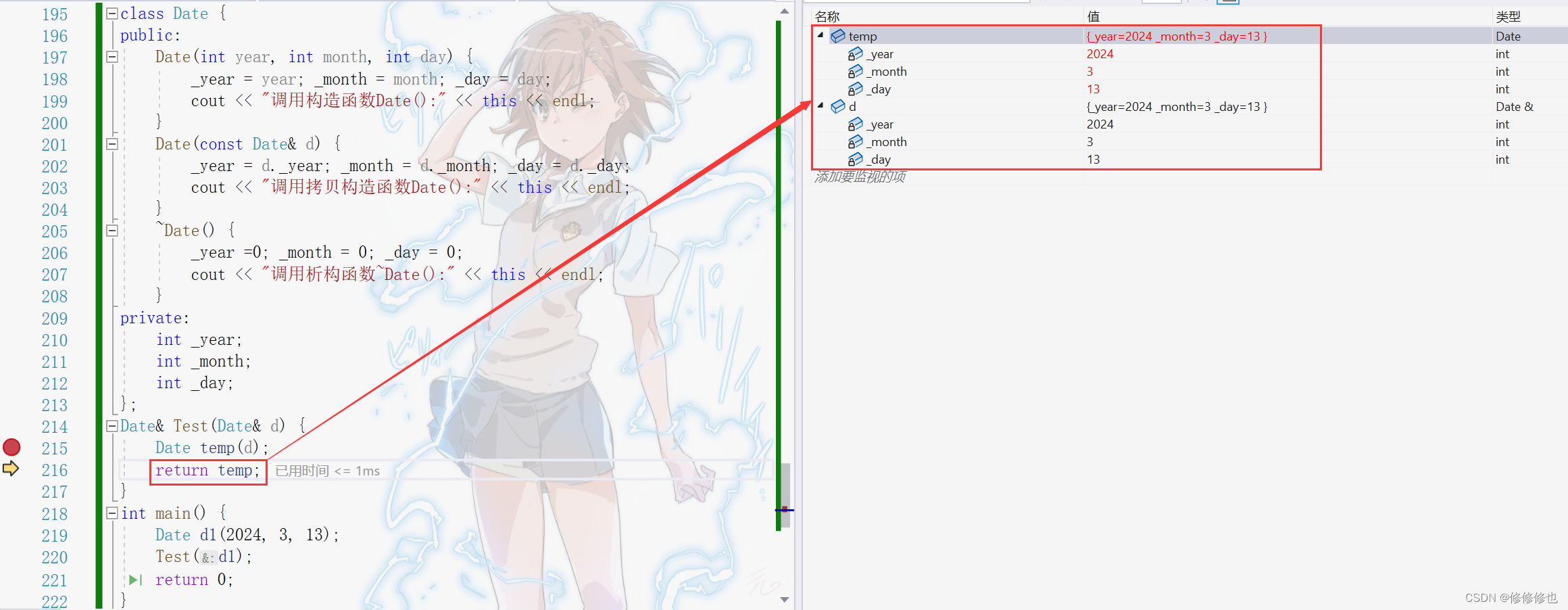 但还有一点需要注意,不能够将函数内部创建的变量通过引用返回值返回给主函数,因为该变量出了函数就会调用析构函数销毁,返回给主函数的就会是一个非法的无效引用,如下Date类: