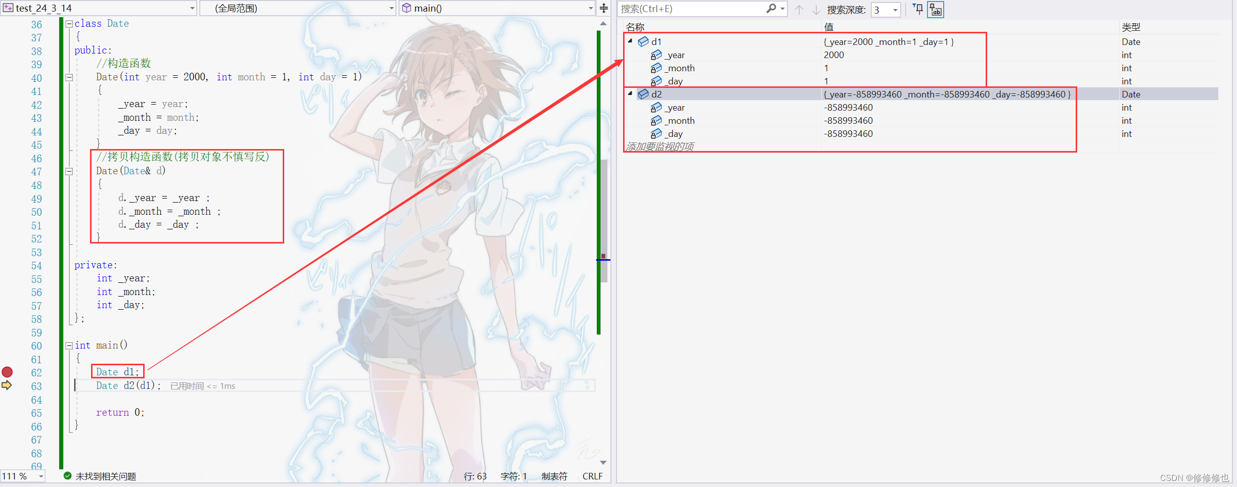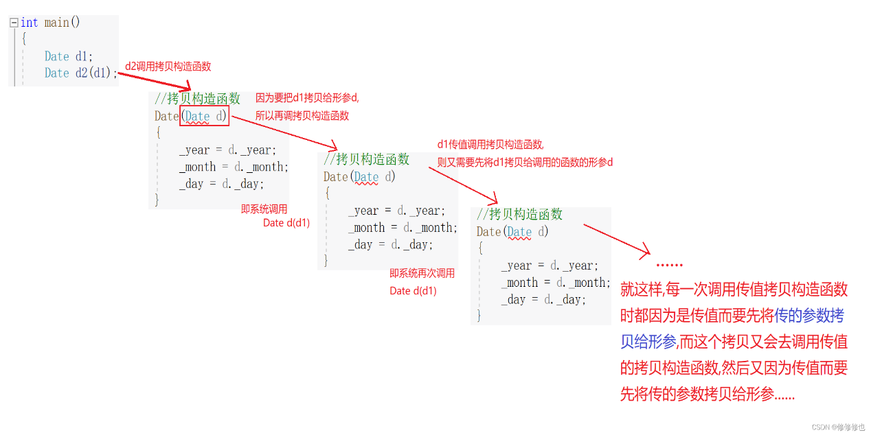 1. 对于参数部分的const引用设计,其原因和原理我们在前面的拷贝构造函数部分已经详细分析过了,即:引用是为了减少传值调用函数时调用拷贝构造函数的消耗,而const修饰则是为了防止引用的参数在函数内不慎被修改。