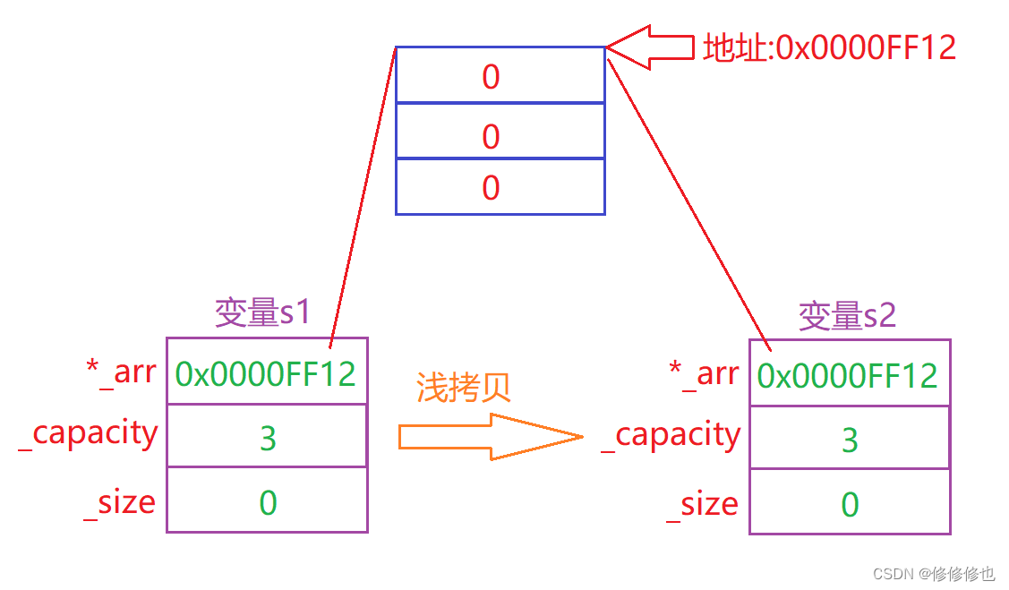 3.用户没有显式实现时,编译器会生成一个默认赋值运算符重载,以值的方式逐字节拷贝。注意:内置类型成员变量是直接赋值的,而自定义类型成员变量需要调用对应类的赋值运算符重载完成赋值。