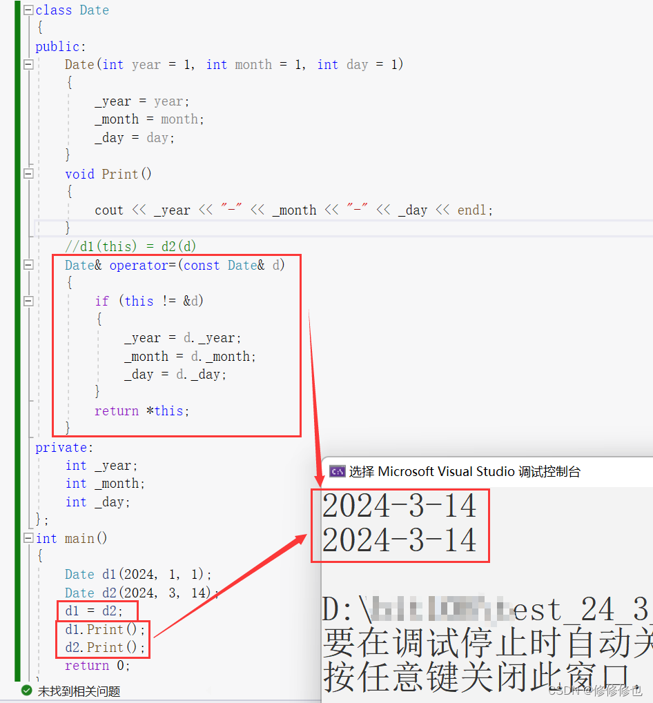 如下,我们为日期类Date写一个赋值运算符重载函数: