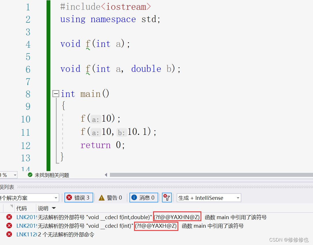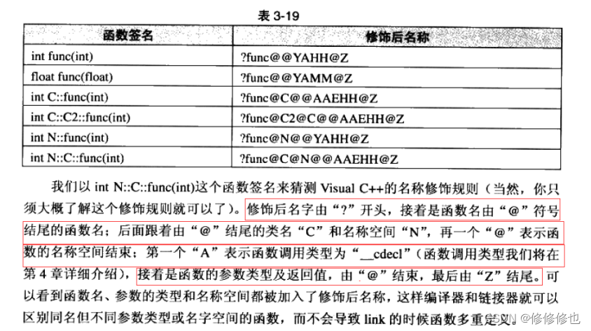 了解了编译链接的过程,我们可以发现,将函数调用部分和函数定义部分连接在一起的是链接的过程,而链接时,面对f()函数,链接接器会使用哪个名字去找呢?这里每个编译器都有自己的函数名修饰规则。