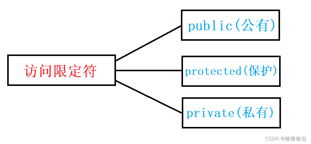• protected和private修饰的成员在类外不能直接被访问(此处protected和private是类似的)。