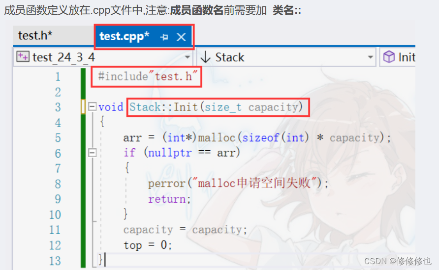 2.类声明与成员函数定义分别放在不同的工程文件中: