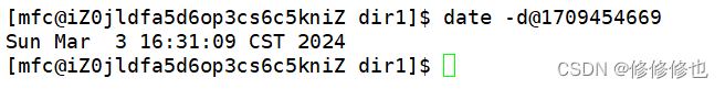 使用date -d@1709454669还原时间戳:
