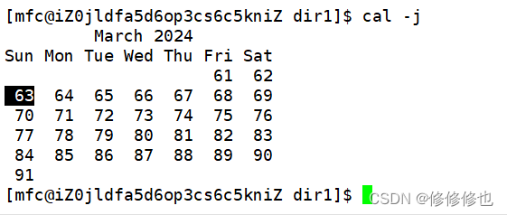使用cal -j显示当月在一年中的第几天: