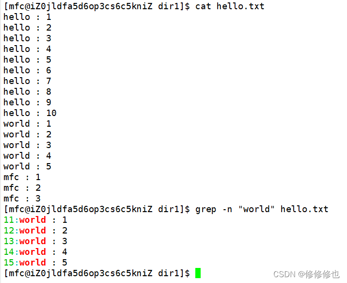 使用grep -n指令搜寻字符串时顺便输出行号: