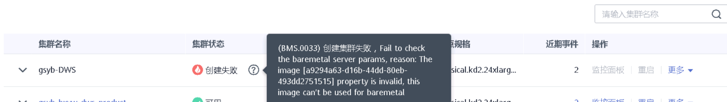 [HCS]DWS集群下发失败:镜像无效,BMS.0033