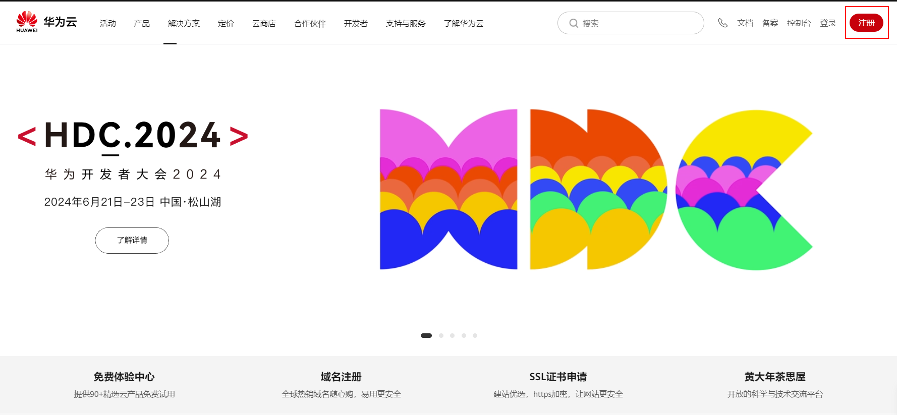 首先明确是否有华为账号,如果没有华为账号,需提前注册华为账号。打开华为云官网(https://www.huaweicloud.cn/),点击右上角【注册】按钮,进行注册。