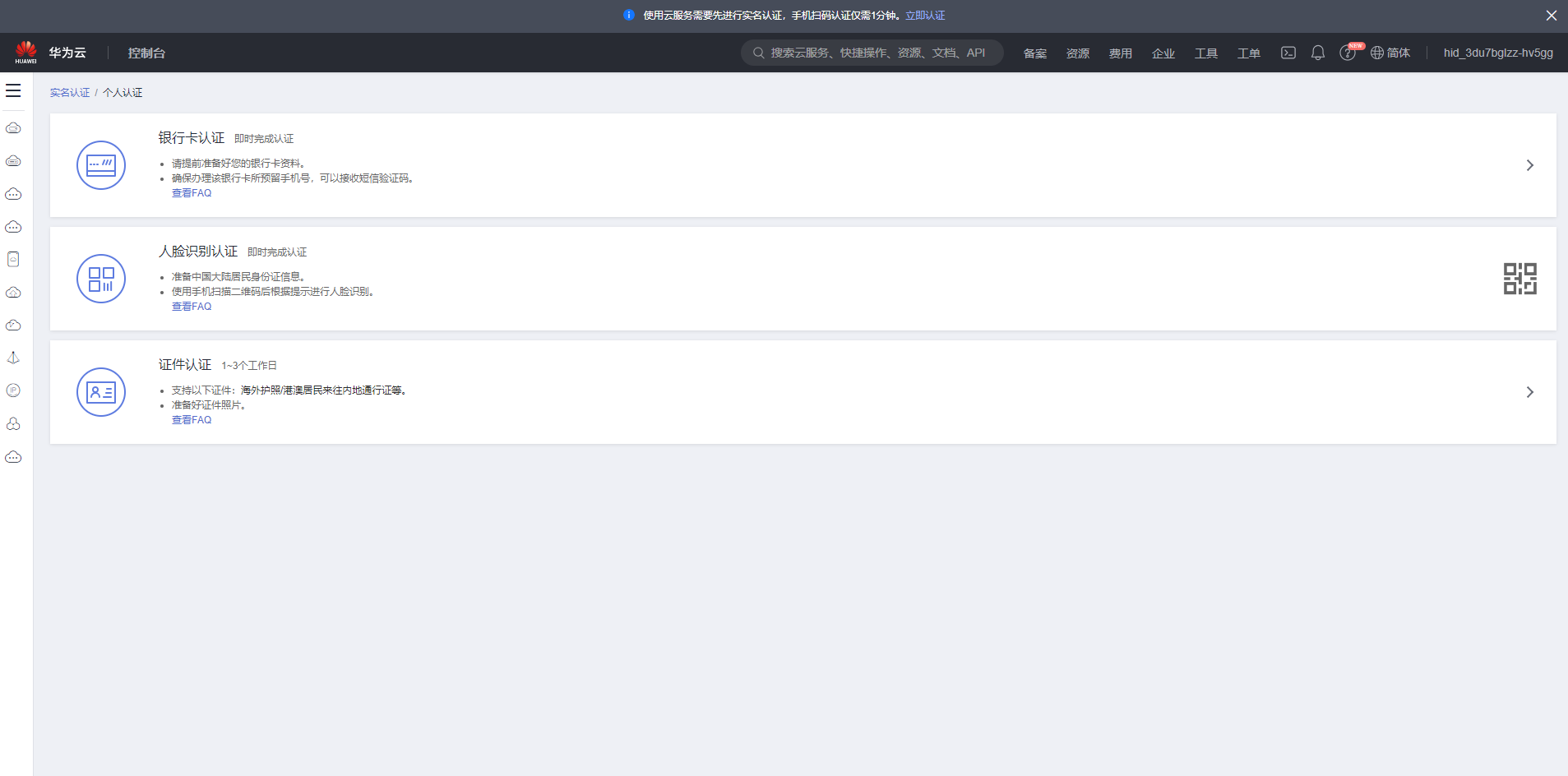 以“个人认证”为例,人脸验证和银行卡认证,都是实时生效;证件认证是需要人工审核1-3工作日。
