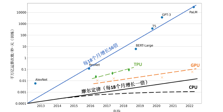 图2 机器学习模型参数量增长和计算硬件的算力增长对比