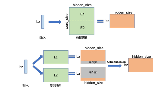 图9 两节点Embedding 算子张量并行示例